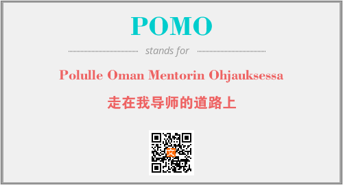英文缩略词“POMO”经常作为“Polulle Oman Mentorin Ohjauksessa”的英文缩写来使用,中文表示:“走在我导师的道路上”。本文将详细介绍英文缩写词POMO所代表英文单词,其对应的中文拼音、详细解释以及在英语中的流行度。此外,还有关于缩略词POMO的分类、应用领域及相关应用示例等。