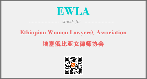 上述内容是“Ethiopian Women Lawyers\' Association”作为“EWLA”的缩写,解释为“埃塞俄比亚女律师协会”时的信息,以及英文缩略词EWLA所代表的英文单词,其对应的中文拼音、详细解释以及在英文中的流行度和相关分类、应用领域及应用示例等。