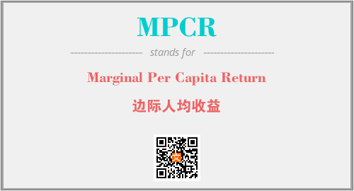 上述内容是“Marginal Per Capita Return”作为“MPCR”的缩写,解释为“边际人均收益”时的信息,以及英文缩略词MPCR所代表的英文单词,其对应的中文拼音、详细解释以及在英文中的流行度和相关分类、应用领域及应用示例等。