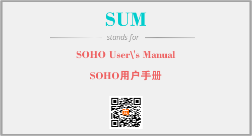 上述内容是“SOHO User\'s Manual”作为“SUM”的缩写,解释为“SOHO用户手册”时的信息,以及英文缩略词SUM所代表的英文单词,其对应的中文拼音、详细解释以及在英文中的流行度和相关分类、应用领域及应用示例等。