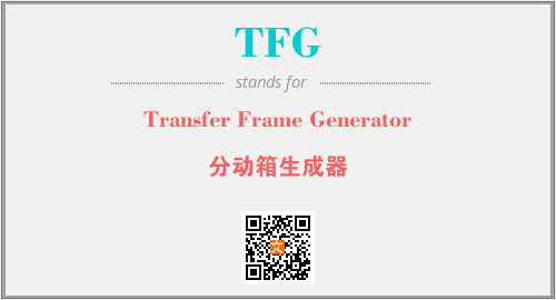 上述内容是“Transfer Frame Generator”作为“TFG”的缩写,解释为“分动箱生成器”时的信息,以及英文缩略词TFG所代表的英文单词,其对应的中文拼音、详细解释以及在英文中的流行度和相关分类、应用领域及应用示例等。