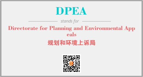 上述内容是“Directorate for Planning and Environmental Appeals”作为“DPEA”的缩写,解释为“规划和环境上诉局”时的信息,以及英文缩略词DPEA所代表的英文单词,其对应的中文拼音、详细解释以及在英文中的流行度和相关分类、应用领域及应用示例等。