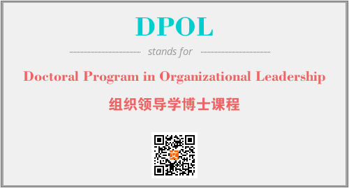 上述内容是“Doctoral Program in Organizational Leadership”作为“DPOL”的缩写,解释为“组织领导学博士课程”时的信息,以及英文缩略词DPOL所代表的英文单词,其对应的中文拼音、详细解释以及在英文中的流行度和相关分类、应用领域及应用示例等。