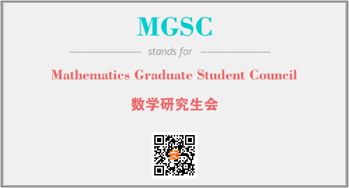 上述内容是“Mathematics Graduate Student Council”作为“MGSC”的缩写,解释为“数学研究生会”时的信息,以及英文缩略词MGSC所代表的英文单词,其对应的中文拼音、详细解释以及在英文中的流行度和相关分类、应用领域及应用示例等。
