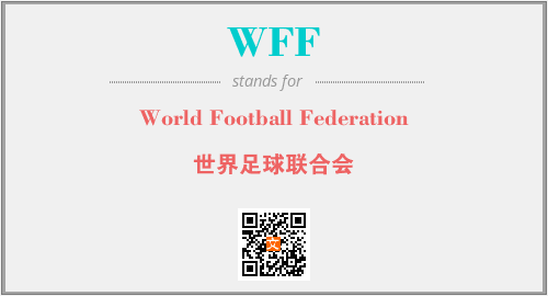 上述内容是“World Football Federation”作为“WFF”的缩写,解释为“世界足球联合会”时的信息,以及英文缩略词WFF所代表的英文单词,其对应的中文拼音、详细解释以及在英文中的流行度和相关分类、应用领域及应用示例等。