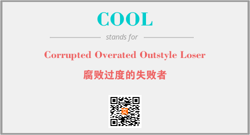 上述内容是“Corrupted Overated Outstyle Loser”作为“COOL”的缩写,解释为“腐败过度的失败者”时的信息,以及英文缩略词COOL所代表的英文单词,其对应的中文拼音、详细解释以及在英文中的流行度和相关分类、应用领域及应用示例等。