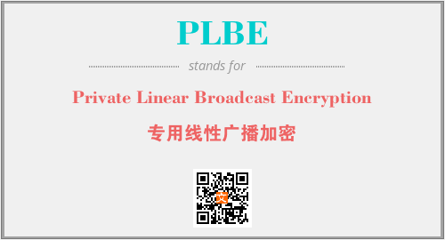 英文缩略词“PLBE”经常作为“Private Linear Broadcast Encryption”的英文缩写来使用,中文表示:“专用线性广播加密”。本文将详细介绍英文缩写词PLBE所代表英文单词,其对应的中文拼音、详细解释以及在英语中的流行度。此外,还有关于缩略词PLBE的分类、应用领域及相关应用示例等。