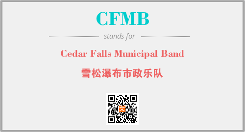 英文缩略词“CFMB”经常作为“Cedar Falls Municipal Band”的英文缩写来使用,中文表示:“雪松瀑布市政乐队”。本文将详细介绍英文缩写词CFMB所代表英文单词,其对应的中文拼音、详细解释以及在英语中的流行度。此外,还有关于缩略词CFMB的分类、应用领域及相关应用示例等。