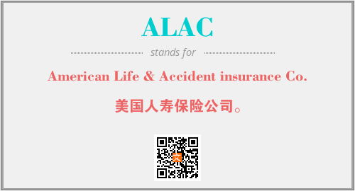 英文缩略词“ALAC”经常作为“American Life & Accident insurance Co.”的英文缩写来使用,中文表示:“美国人寿保险公司。”。本文将详细介绍英文缩写词ALAC所代表英文单词,其对应的中文拼音、详细解释以及在英语中的流行度。此外,还有关于缩略词ALAC的分类、应用领域及相关应用示例等。