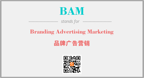 上述内容是“Branding Advertising Marketing”作为“BAM”的缩写,解释为“品牌广告营销”时的信息,以及英文缩略词BAM所代表的英文单词,其对应的中文拼音、详细解释以及在英文中的流行度和相关分类、应用领域及应用示例等。
