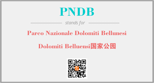 英文缩略词“PNDB”经常作为“Parco Nazionale Dolomiti Bellunesi”的英文缩写来使用,中文表示:“Dolomiti Belluensi国家公园”。本文将详细介绍英文缩写词PNDB所代表英文单词,其对应的中文拼音、详细解释以及在英语中的流行度。此外,还有关于缩略词PNDB的分类、应用领域及相关应用示例等。