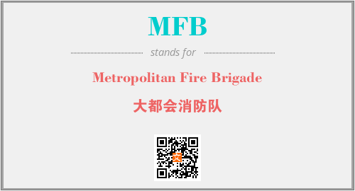 英文缩略词“MFB”经常作为“Metropolitan Fire Brigade”的英文缩写来使用,中文表示:“大都会消防队”。本文将详细介绍英文缩写词MFB所代表英文单词,其对应的中文拼音、详细解释以及在英语中的流行度。此外,还有关于缩略词MFB的分类、应用领域及相关应用示例等。
