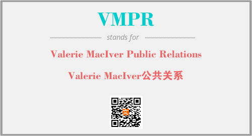 以上为Valerie MacIver Public Relations英文缩略词VMPR的中文解释,以及该英文缩写在英语的流行度、分类和应用领域方面的信息。