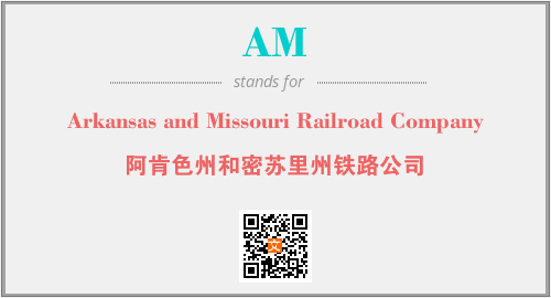 上述内容是“Arkansas and Missouri Railroad Company”作为“AM”的缩写,解释为“阿肯色州和密苏里州铁路公司”时的信息,以及英文缩略词AM所代表的英文单词,其对应的中文拼音、详细解释以及在英文中的流行度和相关分类、应用领域及应用示例等。