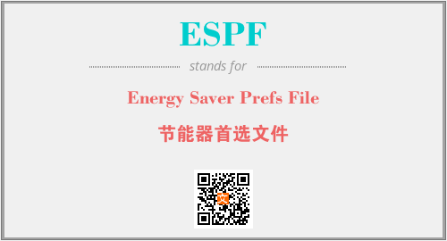 英文缩略词“ESPF”经常作为“Energy Saver Prefs File”的英文缩写来使用,中文表示:“节能器首选文件”。本文将详细介绍英文缩写词ESPF所代表英文单词,其对应的中文拼音、详细解释以及在英语中的流行度。此外,还有关于缩略词ESPF的分类、应用领域及相关应用示例等。