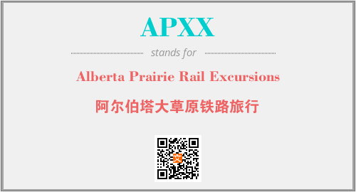 上述内容是“Alberta Prairie Rail Excursions”作为“APXX”的缩写,解释为“阿尔伯塔大草原铁路旅行”时的信息,以及英文缩略词APXX所代表的英文单词,其对应的中文拼音、详细解释以及在英文中的流行度和相关分类、应用领域及应用示例等。