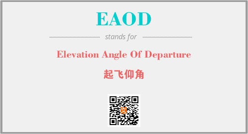 上述内容是“Elevation Angle Of Departure”作为“EAOD”的缩写,解释为“起飞仰角”时的信息,以及英文缩略词EAOD所代表的英文单词,其对应的中文拼音、详细解释以及在英文中的流行度和相关分类、应用领域及应用示例等。