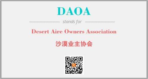 上述内容是“Desert Aire Owners Association”作为“DAOA”的缩写,解释为“沙漠业主协会”时的信息,以及英文缩略词DAOA所代表的英文单词,其对应的中文拼音、详细解释以及在英文中的流行度和相关分类、应用领域及应用示例等。