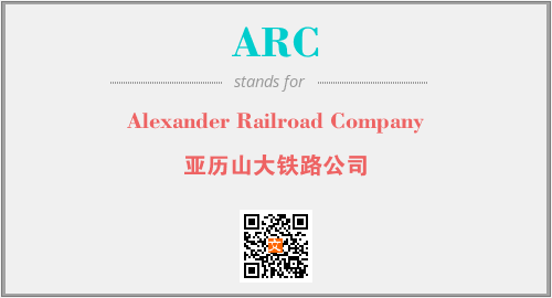 上述内容是“Alexander Railroad Company”作为“ARC”的缩写,解释为“亚历山大铁路公司”时的信息,以及英文缩略词ARC所代表的英文单词,其对应的中文拼音、详细解释以及在英文中的流行度和相关分类、应用领域及应用示例等。