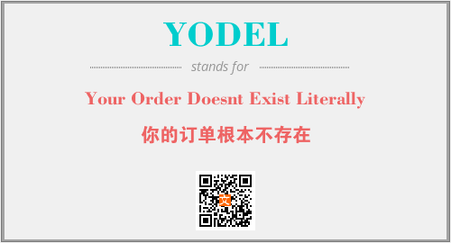 以上为Your Order Doesnt Exist Literally英文缩略词YODEL的中文解释,以及该英文缩写在英语的流行度、分类和应用领域方面的信息。