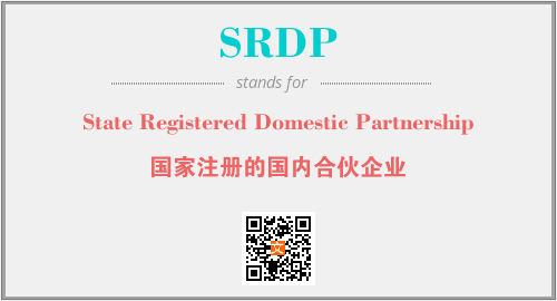 英文缩略词“SRDP”经常作为“State Registered Domestic Partnership”的英文缩写来使用,中文表示:“国家注册的国内合伙企业”。本文将详细介绍英文缩写词SRDP所代表英文单词,其对应的中文拼音、详细解释以及在英语中的流行度。此外,还有关于缩略词SRDP的分类、应用领域及相关应用示例等。