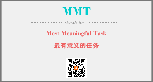 上述内容是“Most Meaningful Task”作为“MMT”的缩写,解释为“最有意义的任务”时的信息,以及英文缩略词MMT所代表的英文单词,其对应的中文拼音、详细解释以及在英文中的流行度和相关分类、应用领域及应用示例等。