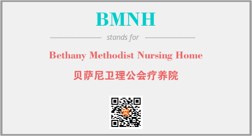 上述内容是“Bethany Methodist Nursing Home”作为“BMNH”的缩写,解释为“贝萨尼卫理公会疗养院”时的信息,以及英文缩略词BMNH所代表的英文单词,其对应的中文拼音、详细解释以及在英文中的流行度和相关分类、应用领域及应用示例等。