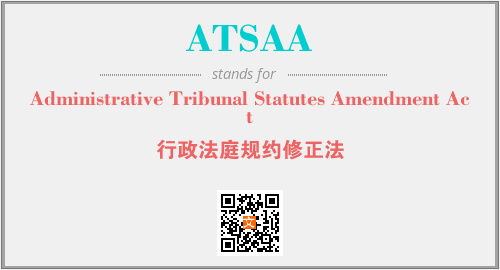上述内容是“Administrative Tribunal Statutes Amendment Act”作为“ATSAA”的缩写,解释为“行政法庭规约修正法”时的信息,以及英文缩略词ATSAA所代表的英文单词,其对应的中文拼音、详细解释以及在英文中的流行度和相关分类、应用领域及应用示例等。