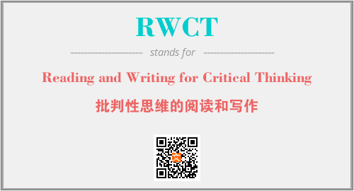 英文缩略词“RWCT”经常作为“Reading and Writing for Critical Thinking”的英文缩写来使用,中文表示:“批判性思维的阅读和写作”。本文将详细介绍英文缩写词RWCT所代表英文单词,其对应的中文拼音、详细解释以及在英语中的流行度。此外,还有关于缩略词RWCT的分类、应用领域及相关应用示例等。