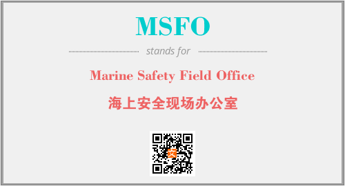 英文缩略词“MSFO”经常作为“Marine Safety Field Office”的英文缩写来使用,中文表示:“海上安全现场办公室”。本文将详细介绍英文缩写词MSFO所代表英文单词,其对应的中文拼音、详细解释以及在英语中的流行度。此外,还有关于缩略词MSFO的分类、应用领域及相关应用示例等。