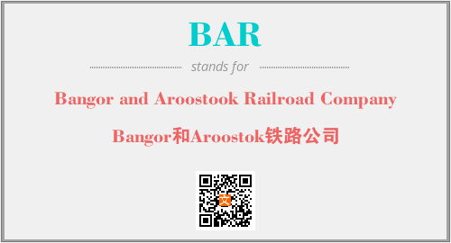 上述内容是“Bangor and Aroostook Railroad Company”作为“BAR”的缩写,解释为“Bangor和Aroostok铁路公司”时的信息,以及英文缩略词BAR所代表的英文单词,其对应的中文拼音、详细解释以及在英文中的流行度和相关分类、应用领域及应用示例等。