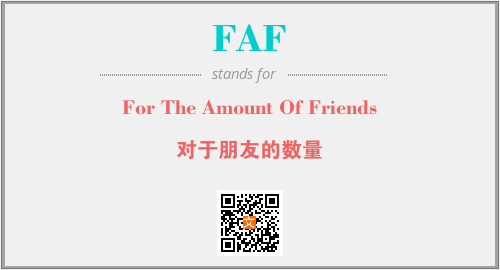上述内容是“For The Amount Of Friends”作为“FAF”的缩写,解释为“对于朋友的数量”时的信息,以及英文缩略词FAF所代表的英文单词,其对应的中文拼音、详细解释以及在英文中的流行度和相关分类、应用领域及应用示例等。