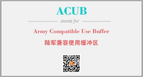 英文缩略词“ACUB”经常作为“Army Compatible Use Buffer”的英文缩写来使用,中文表示:“陆军兼容使用缓冲区”。本文将详细介绍英文缩写词ACUB所代表英文单词,其对应的中文拼音、详细解释以及在英语中的流行度。此外,还有关于缩略词ACUB的分类、应用领域及相关应用示例等。