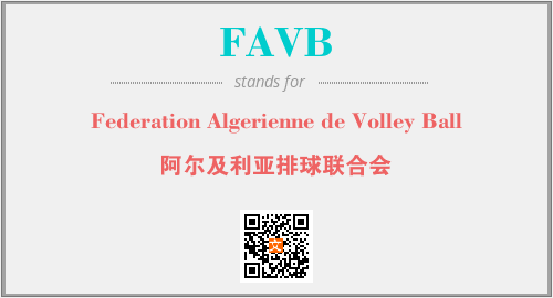 英文缩略词“FAVB”经常作为“Federation Algerienne de Volley Ball”的英文缩写来使用,中文表示:“阿尔及利亚排球联合会”。本文将详细介绍英文缩写词FAVB所代表英文单词,其对应的中文拼音、详细解释以及在英语中的流行度。此外,还有关于缩略词FAVB的分类、应用领域及相关应用示例等。