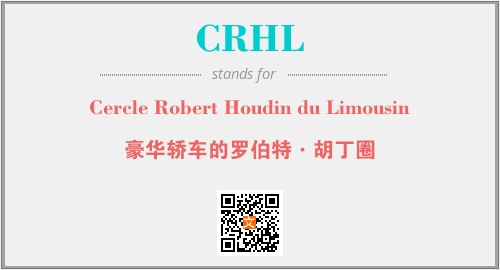 上述内容是“Cercle Robert Houdin du Limousin”作为“CRHL”的缩写,解释为“豪华轿车的罗伯特·胡丁圈”时的信息,以及英文缩略词CRHL所代表的英文单词,其对应的中文拼音、详细解释以及在英文中的流行度和相关分类、应用领域及应用示例等。