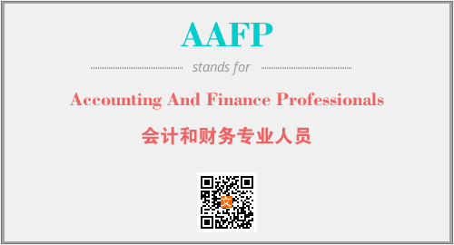 英文缩略词“AAFP”经常作为“Accounting And Finance Professionals”的英文缩写来使用,中文表示:“会计和财务专业人员”。本文将详细介绍英文缩写词AAFP所代表英文单词,其对应的中文拼音、详细解释以及在英语中的流行度。此外,还有关于缩略词AAFP的分类、应用领域及相关应用示例等。