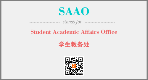 以上为Student Academic Affairs Office英文缩略词SAAO的中文解释,以及该英文缩写在英语的流行度、分类和应用领域方面的信息。