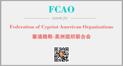 上述内容是“Federation of Cypriot American Organizations”作为“FCAO”的缩写,解释为“塞浦路斯-美洲组织联合会”时的信息,以及英文缩略词FCAO所代表的英文单词,其对应的中文拼音、详细解释以及在英文中的流行度和相关分类、应用领域及应用示例等。