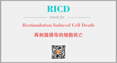 上述内容是“Restimulation Induced Cell Death”作为“RICD”的缩写,解释为“再刺激诱导的细胞死亡”时的信息,以及英文缩略词RICD所代表的英文单词,其对应的中文拼音、详细解释以及在英文中的流行度和相关分类、应用领域及应用示例等。