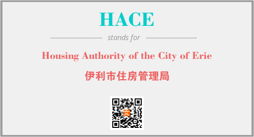 上述内容是“Housing Authority of the City of Erie”作为“HACE”的缩写,解释为“伊利市住房管理局”时的信息,以及英文缩略词HACE所代表的英文单词,其对应的中文拼音、详细解释以及在英文中的流行度和相关分类、应用领域及应用示例等。