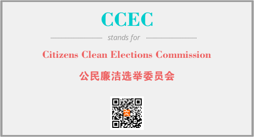 上述内容是“Citizens Clean Elections Commission”作为“CCEC”的缩写,解释为“公民廉洁选举委员会”时的信息,以及英文缩略词CCEC所代表的英文单词,其对应的中文拼音、详细解释以及在英文中的流行度和相关分类、应用领域及应用示例等。