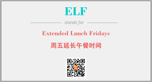 以上为Extended Lunch Fridays英文缩略词ELF的中文解释,以及该英文缩写在英语的流行度、分类和应用领域方面的信息。