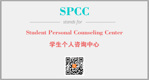 英文缩略词“SPCC”经常作为“Student Personal Counseling Center”的英文缩写来使用,中文表示:“学生个人咨询中心”。本文将详细介绍英文缩写词SPCC所代表英文单词,其对应的中文拼音、详细解释以及在英语中的流行度。此外,还有关于缩略词SPCC的分类、应用领域及相关应用示例等。