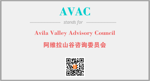 英文缩略词“AVAC”经常作为“Avila Valley Advisory Council”的英文缩写来使用,中文表示:“阿维拉山谷咨询委员会”。本文将详细介绍英文缩写词AVAC所代表英文单词,其对应的中文拼音、详细解释以及在英语中的流行度。此外,还有关于缩略词AVAC的分类、应用领域及相关应用示例等。