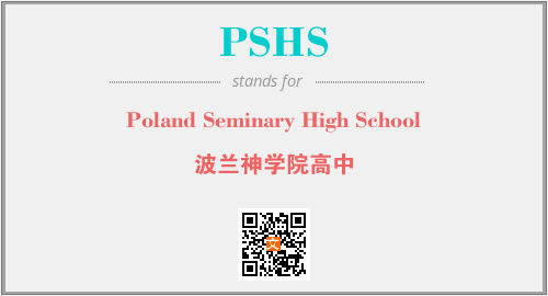 英文缩略词“PSHS”经常作为“Poland Seminary High School”的英文缩写来使用,中文表示:“波兰神学院高中”。本文将详细介绍英文缩写词PSHS所代表英文单词,其对应的中文拼音、详细解释以及在英语中的流行度。此外,还有关于缩略词PSHS的分类、应用领域及相关应用示例等。