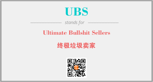 英文缩略词“UBS”经常作为“Ultimate Bullshit Sellers”的英文缩写来使用,中文表示:“终极垃圾卖家”。本文将详细介绍英文缩写词UBS所代表英文单词,其对应的中文拼音、详细解释以及在英语中的流行度。此外,还有关于缩略词UBS的分类、应用领域及相关应用示例等。