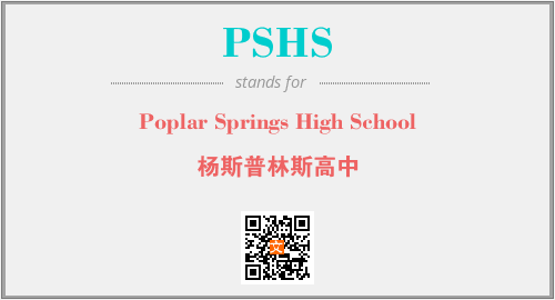 英文缩略词“PSHS”经常作为“Poplar Springs High School”的英文缩写来使用,中文表示:“杨斯普林斯高中”。本文将详细介绍英文缩写词PSHS所代表英文单词,其对应的中文拼音、详细解释以及在英语中的流行度。此外,还有关于缩略词PSHS的分类、应用领域及相关应用示例等。