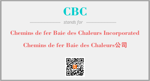 上述内容是“Chemins de fer Baie des Chaleurs Incorporated”作为“CBC”的缩写,解释为“Chemins de fer Baie des Chaleurs公司”时的信息,以及英文缩略词CBC所代表的英文单词,其对应的中文拼音、详细解释以及在英文中的流行度和相关分类、应用领域及应用示例等。