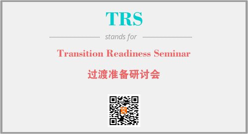 英文缩略词“TRS”经常作为“Transition Readiness Seminar”的英文缩写来使用,中文表示:“过渡准备研讨会”。本文将详细介绍英文缩写词TRS所代表英文单词,其对应的中文拼音、详细解释以及在英语中的流行度。此外,还有关于缩略词TRS的分类、应用领域及相关应用示例等。