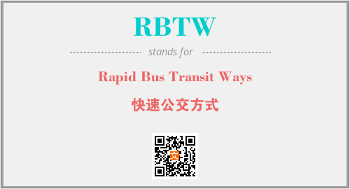 英文缩略词“RBTW”经常作为“Rapid Bus Transit Ways”的英文缩写来使用,中文表示:“快速公交方式”。本文将详细介绍英文缩写词RBTW所代表英文单词,其对应的中文拼音、详细解释以及在英语中的流行度。此外,还有关于缩略词RBTW的分类、应用领域及相关应用示例等。